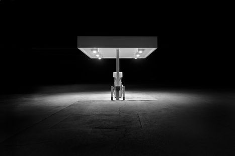 This series grew out of my Cover of Darkness series. Gas stations were not the kind of scene I was initially looking to capture, but I liked the first couple that I shot, and when conditions were right I continued to shoot them. Now they are a series in their own right. What draws me to these empty stations is their brightness amidst all the darkness, like islands in a sea of black, their simple architecture, functional and cold, yet strong and alluring. I like the way their light pools on the broken and stained concrete pads surrounding the pumps. I find that the hard lines, shiny metal, and harsh lighting create a fascinating subject that is perfect for black and white interpretation. So I now hunt them out, late at night to avoid having to shoot around cars coming in for fuel. Late at night, where the only sound might be the hum of the overhead lights, or the dull whine of a random car passing on a distant street. There is a bit of a dystopian feeling or undercurrent around them too, isolated like this in the pitch black, that I find intriguing. So, I invite you to ride along with me and take a look.